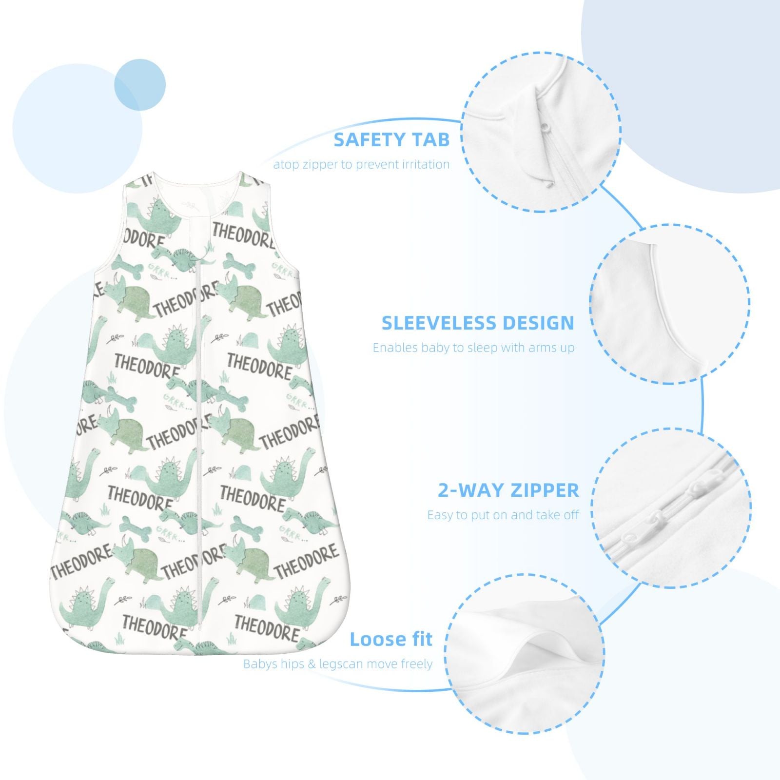 Dinosaur Baby 2-way zipper baby sleeping bag with customized baby name