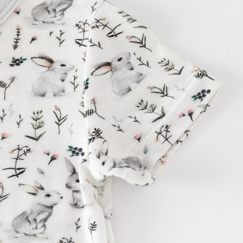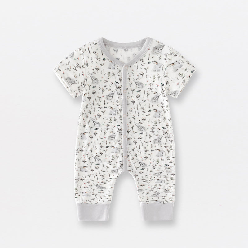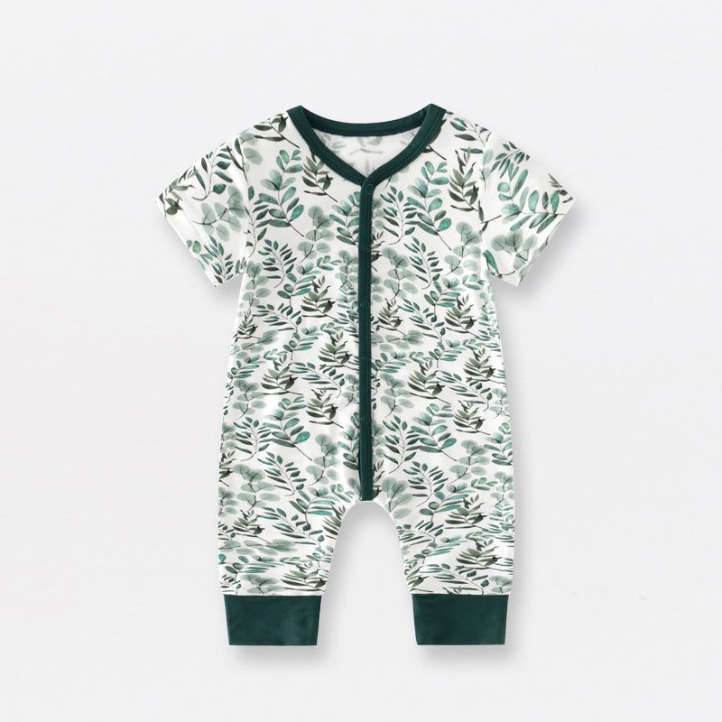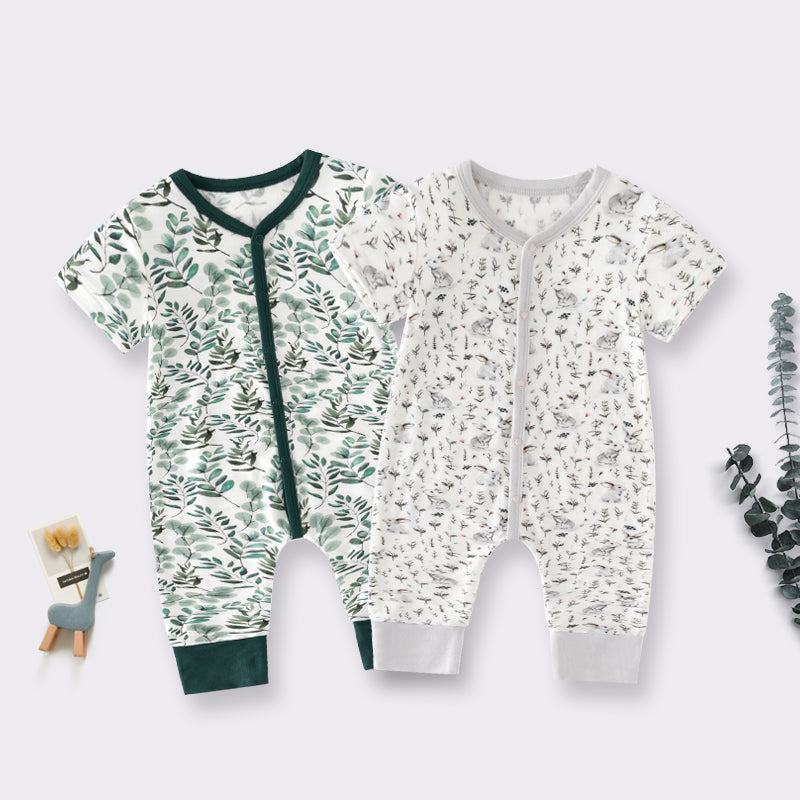 Summer Bamboo Short-Sleeve Baby Romper with Printed Design - Infant Crawling Clothes for Boys and Girls