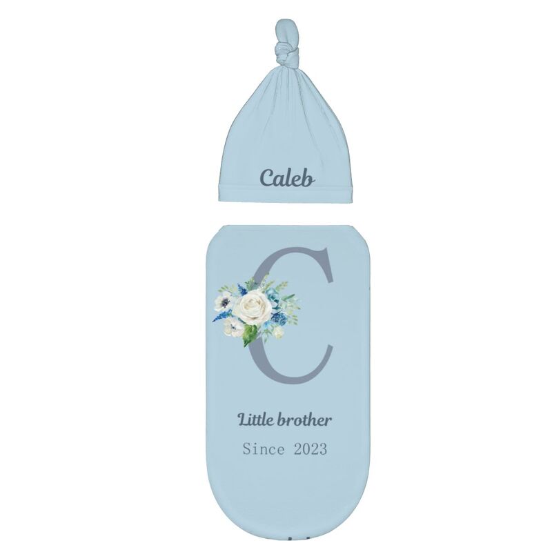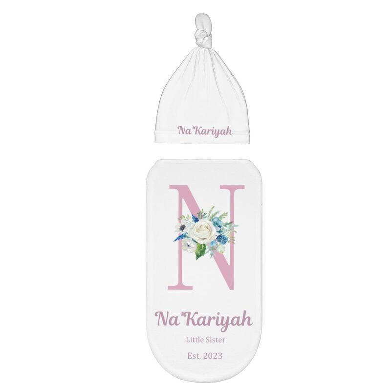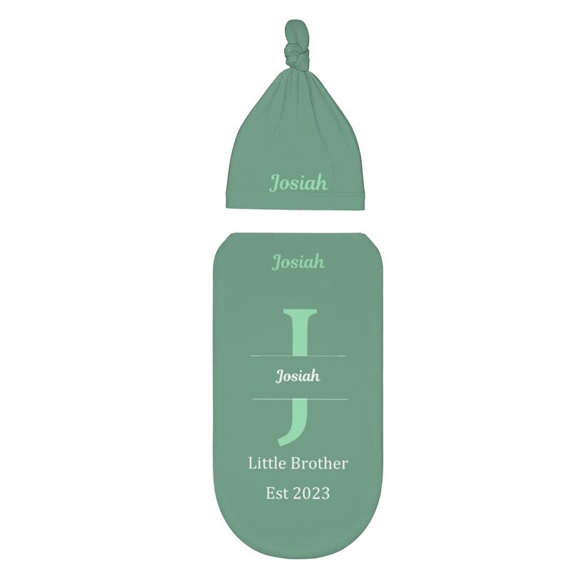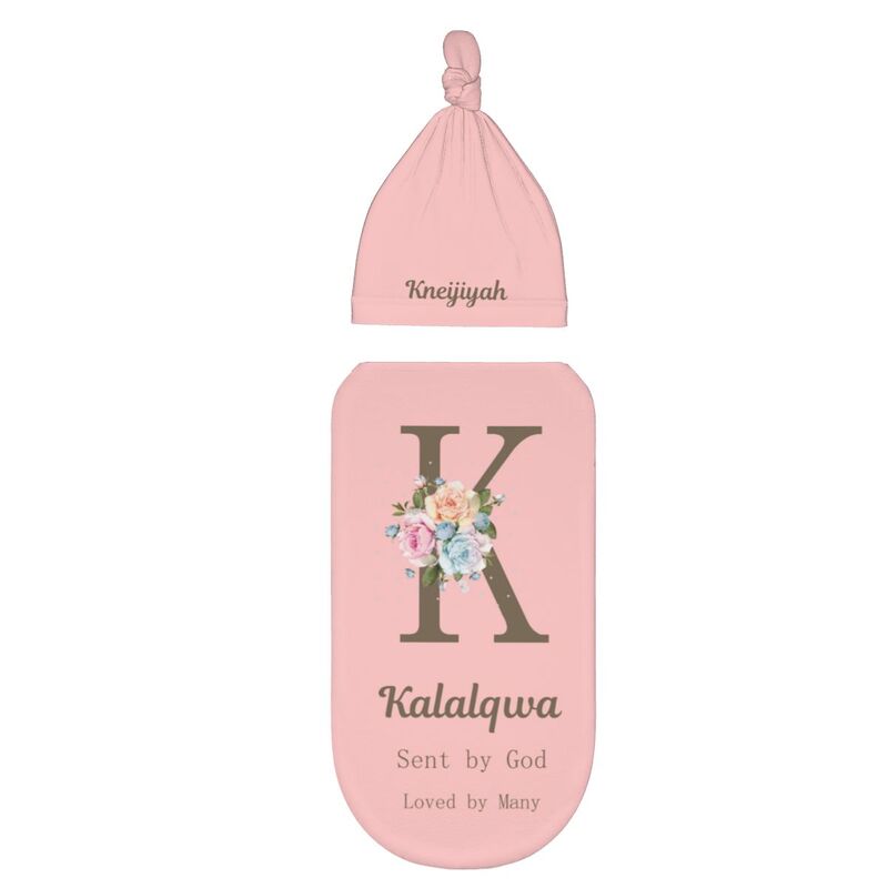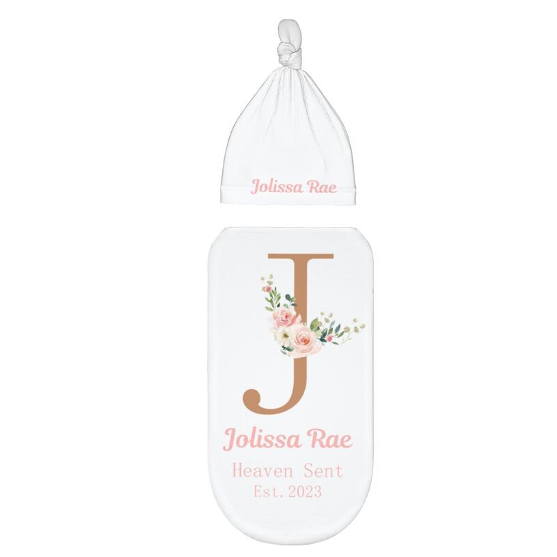 Custom Initial Multiple Colors Newborn Infant Swaddle Blanket with Hat