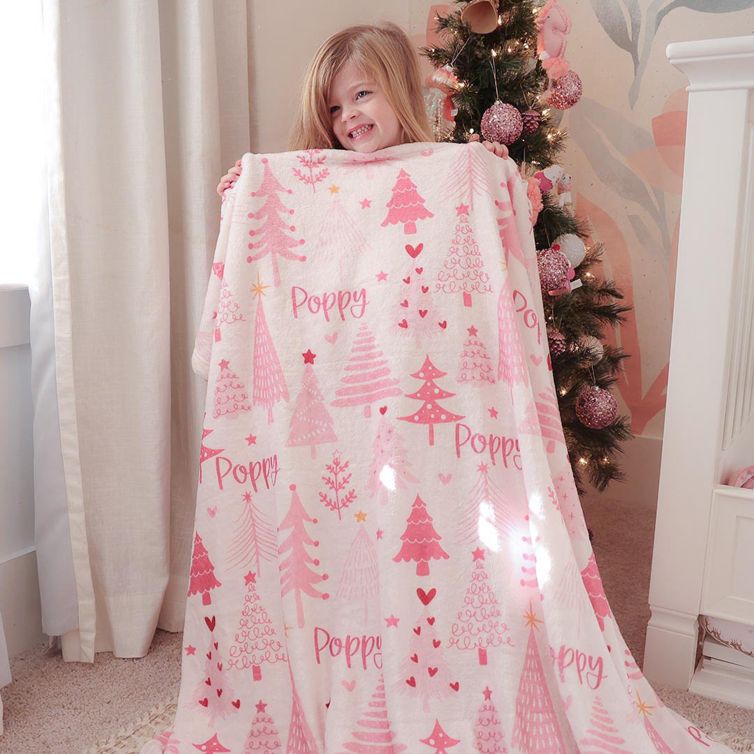 Personalized Pink Trees Swaddle Blanket