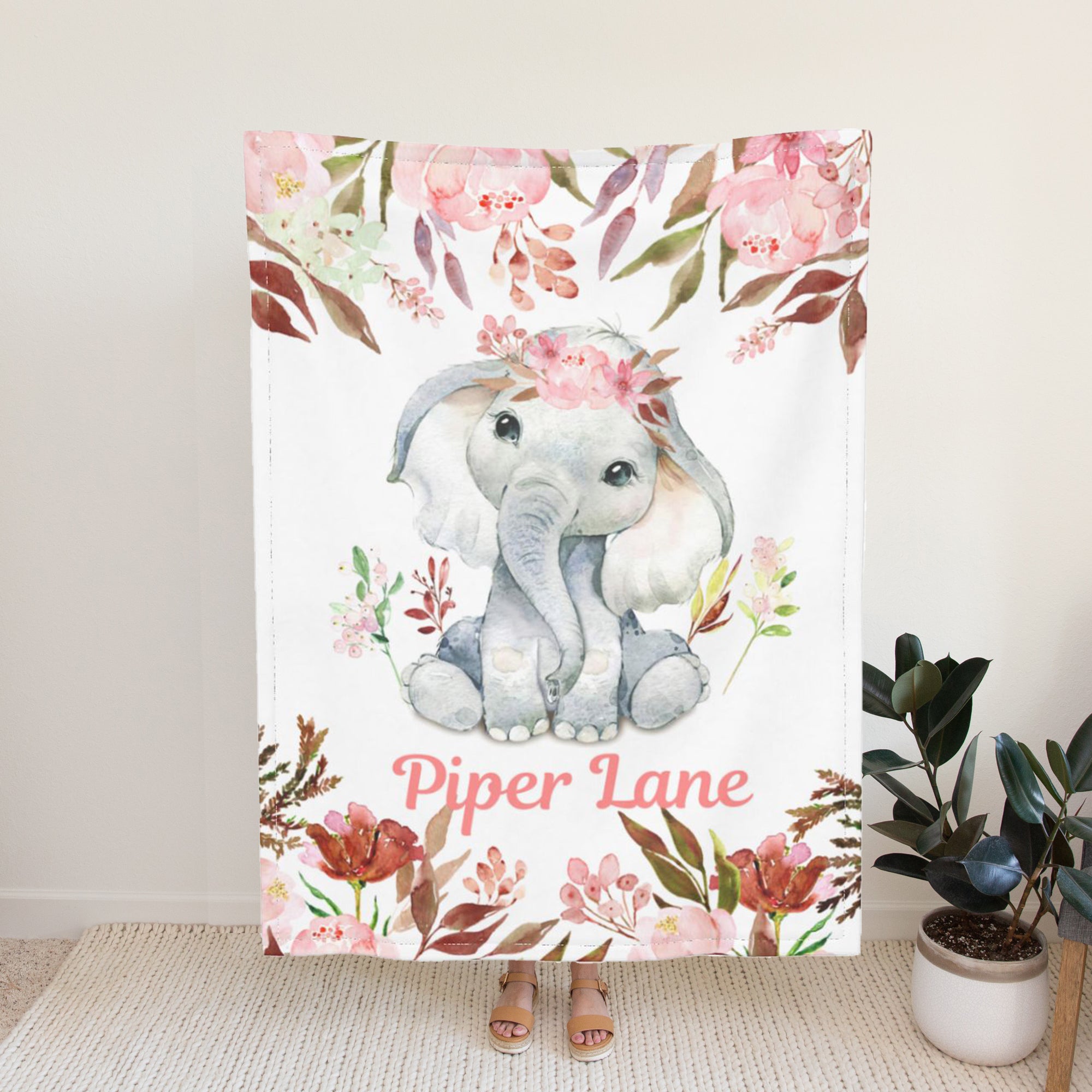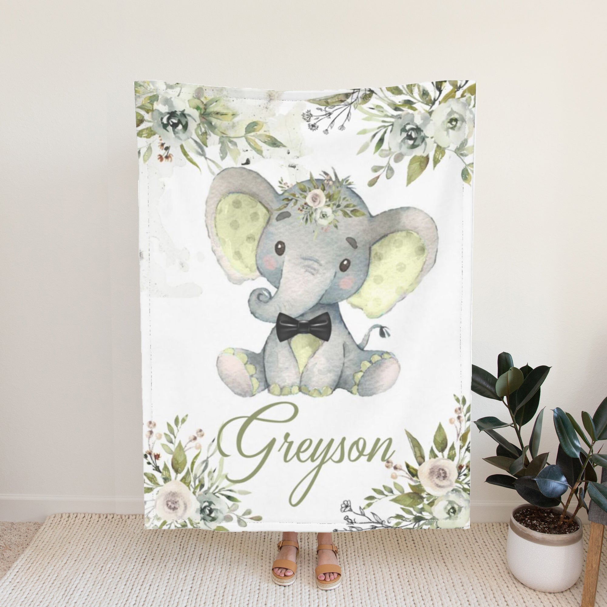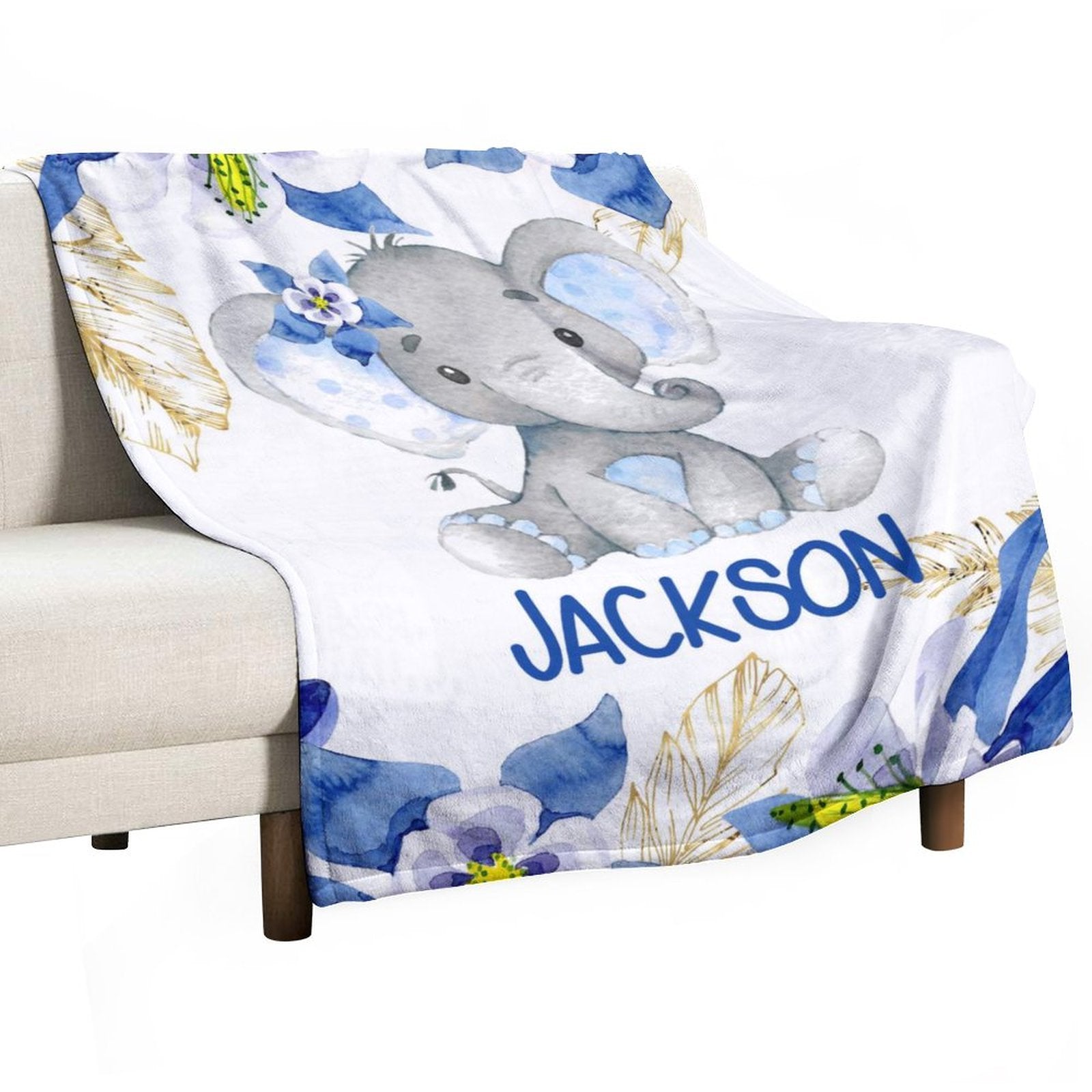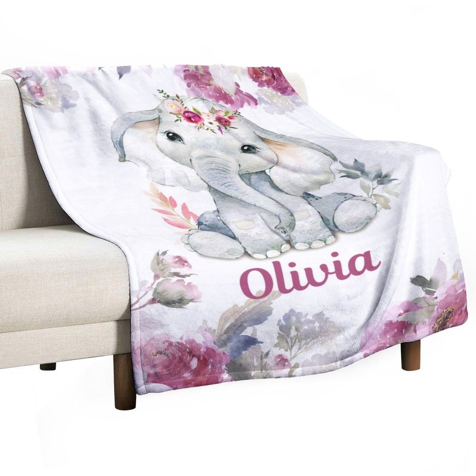 Personalized Blankets with Name Elephant Custom Blanket for Girls Boys