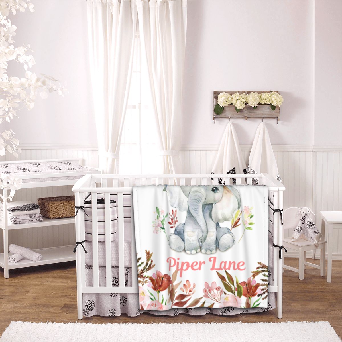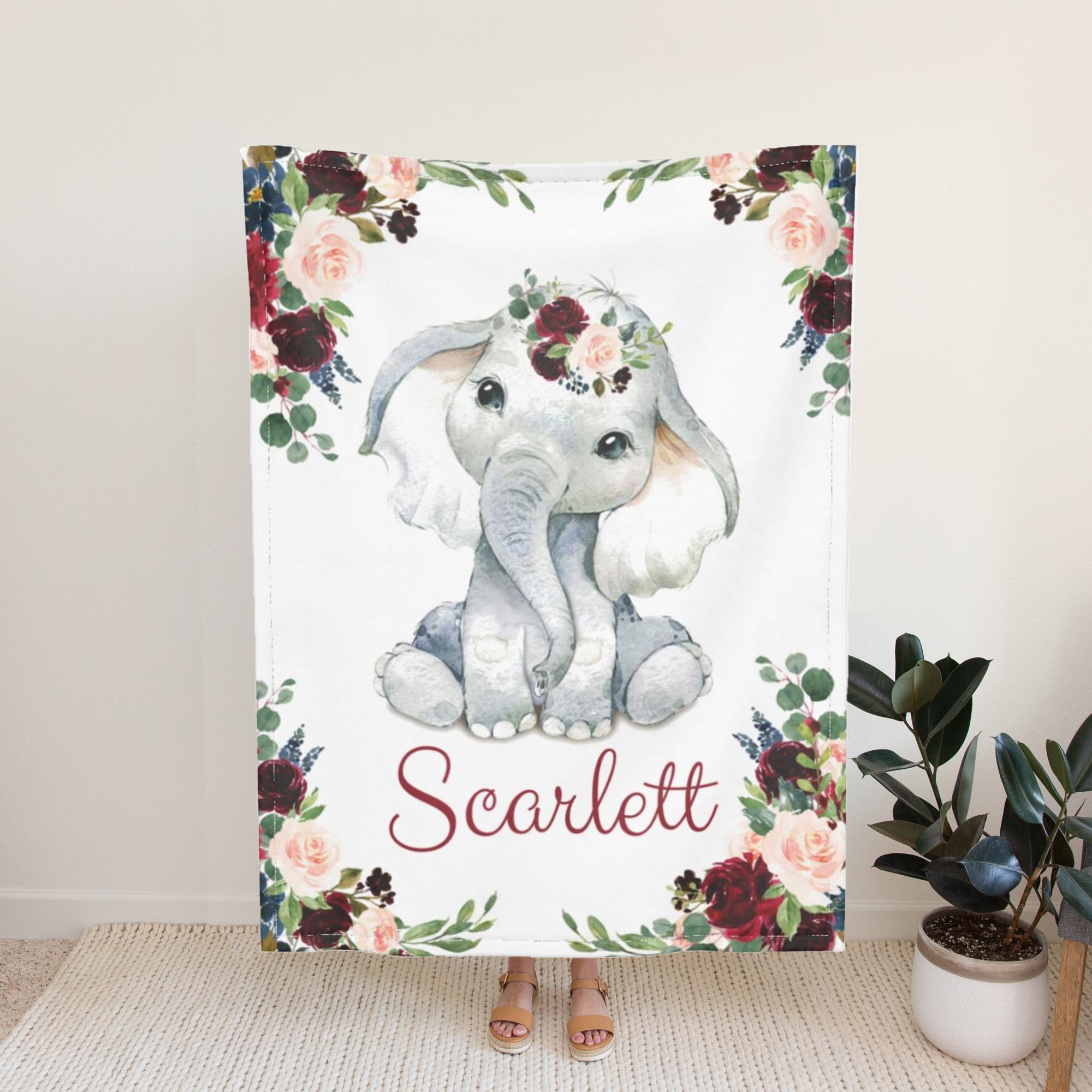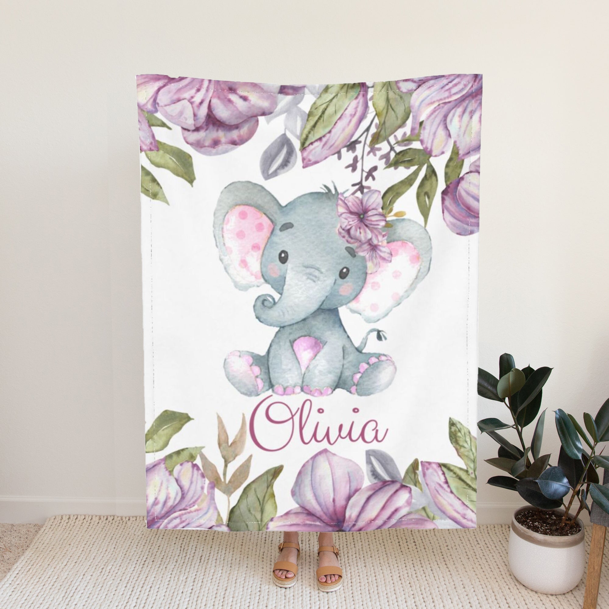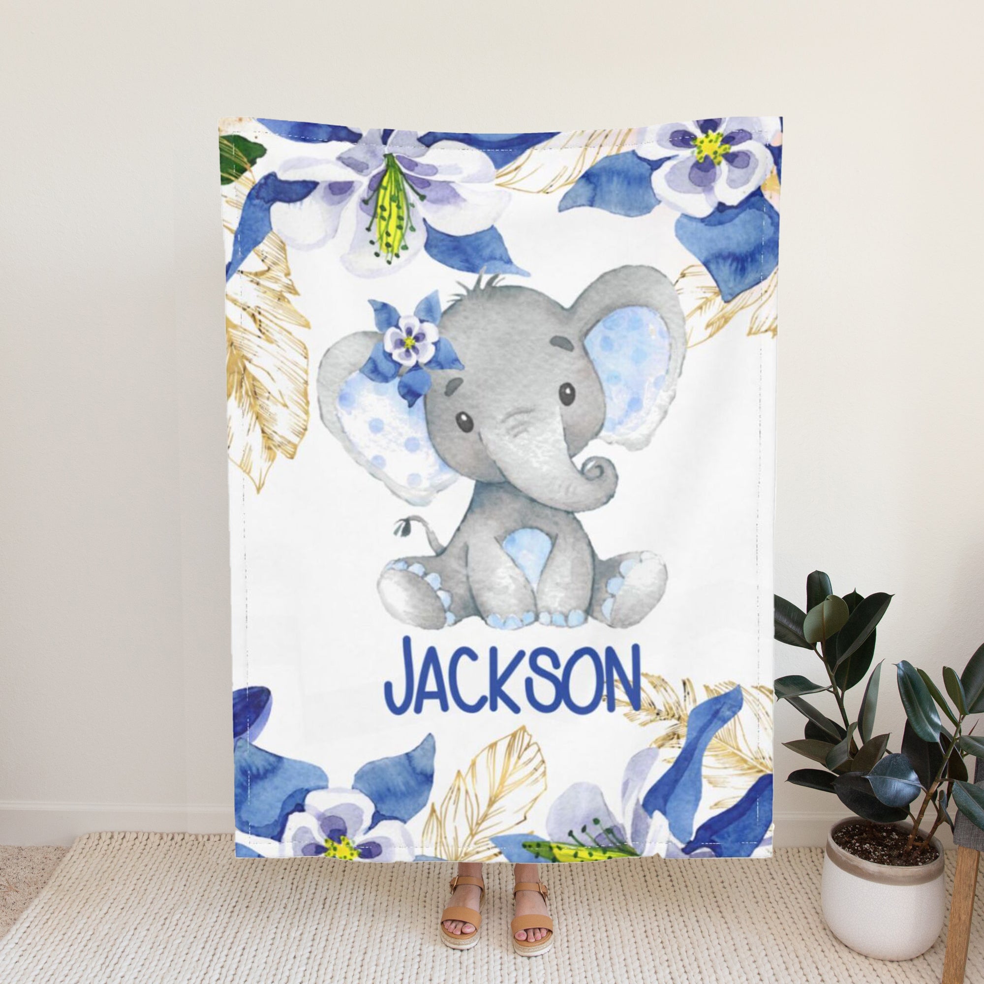 Personalized Blankets with Name Elephant Custom Blanket for Girls Boys