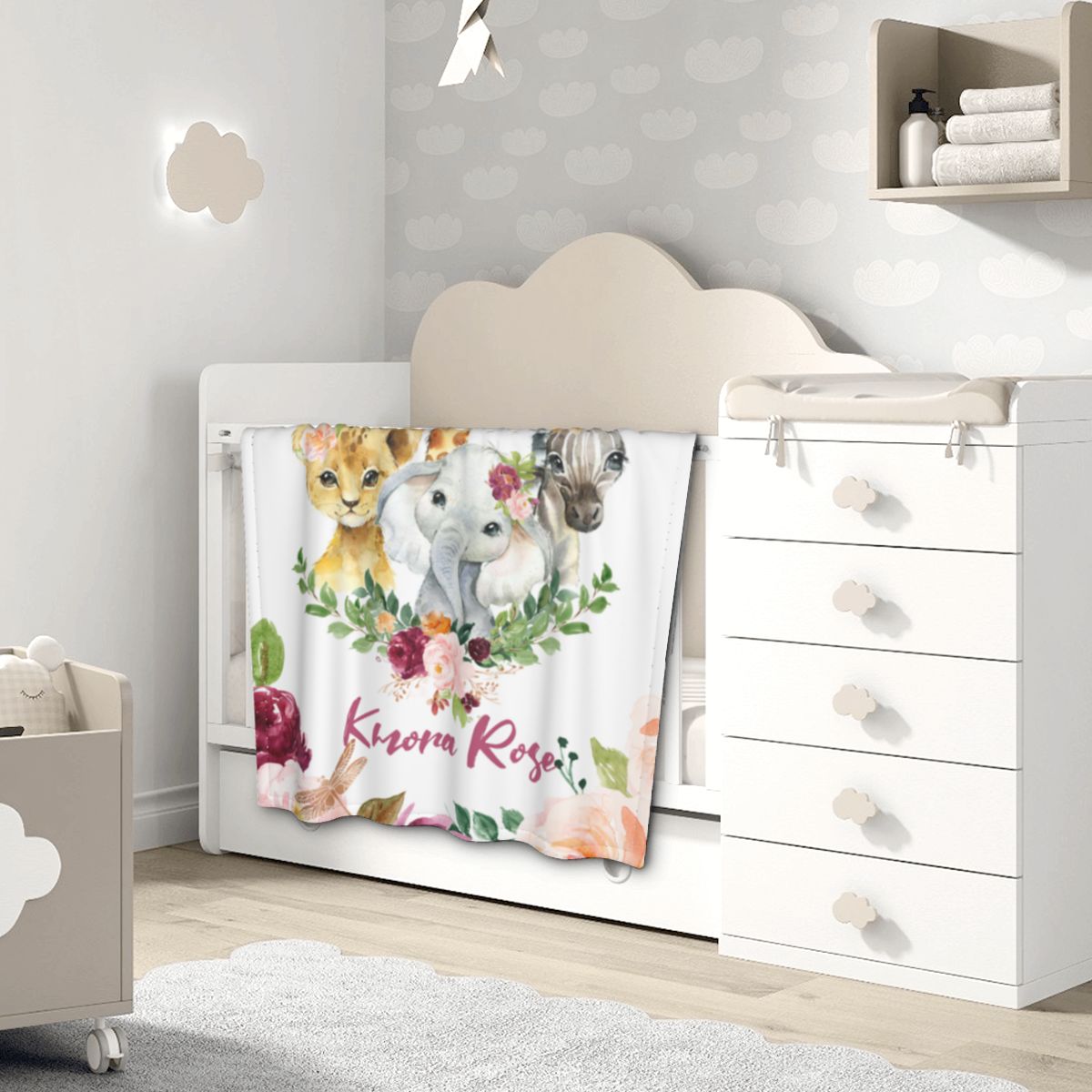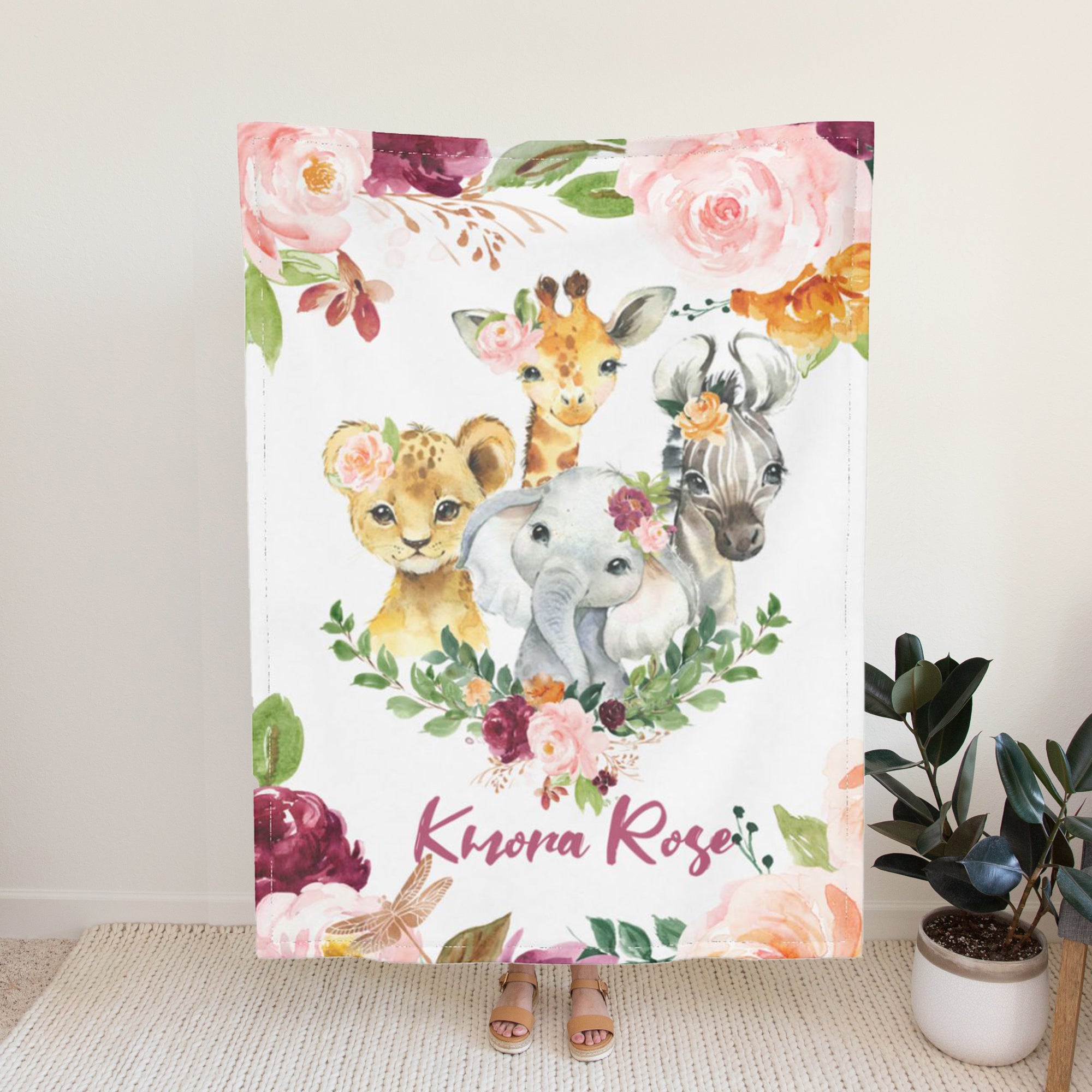 - 【Adorable Personalized Baby Gift 】: This Personalized Baby Items Is Created By Our Designer, Using Cute Elephant, Dinosaur, Giraffe To Match Flowers. A Ideal Gift For Babies And Kids,. These Name Blankets Make The Perfect Gift To Baby Shower, Birthday, Wedding, Mother'S Day, Fathers Day, Thanksgiving, Christmas Or Any Special Days.