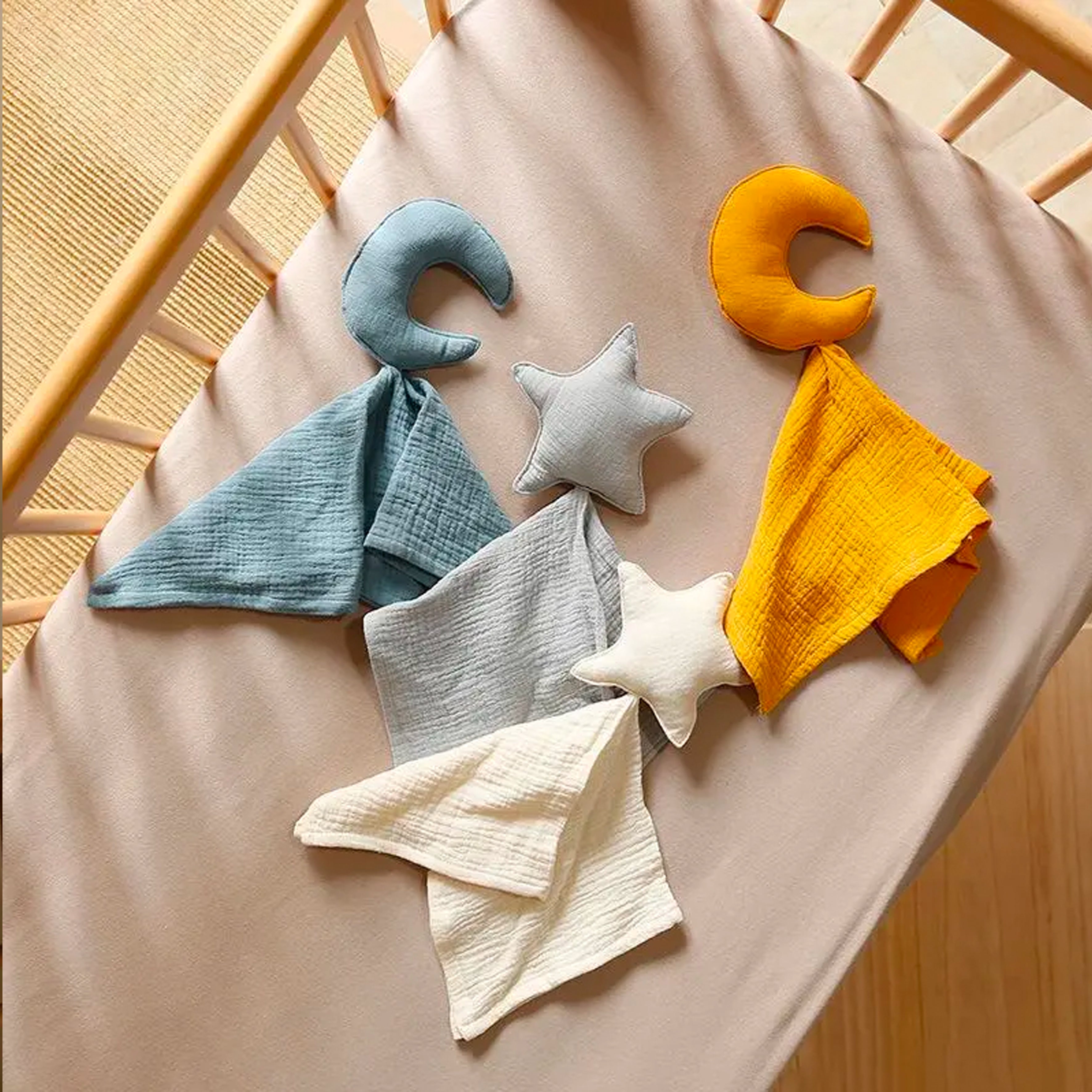 Baby Cotton Muslin Security Blanket Moon Star Comforter Blanket Soft