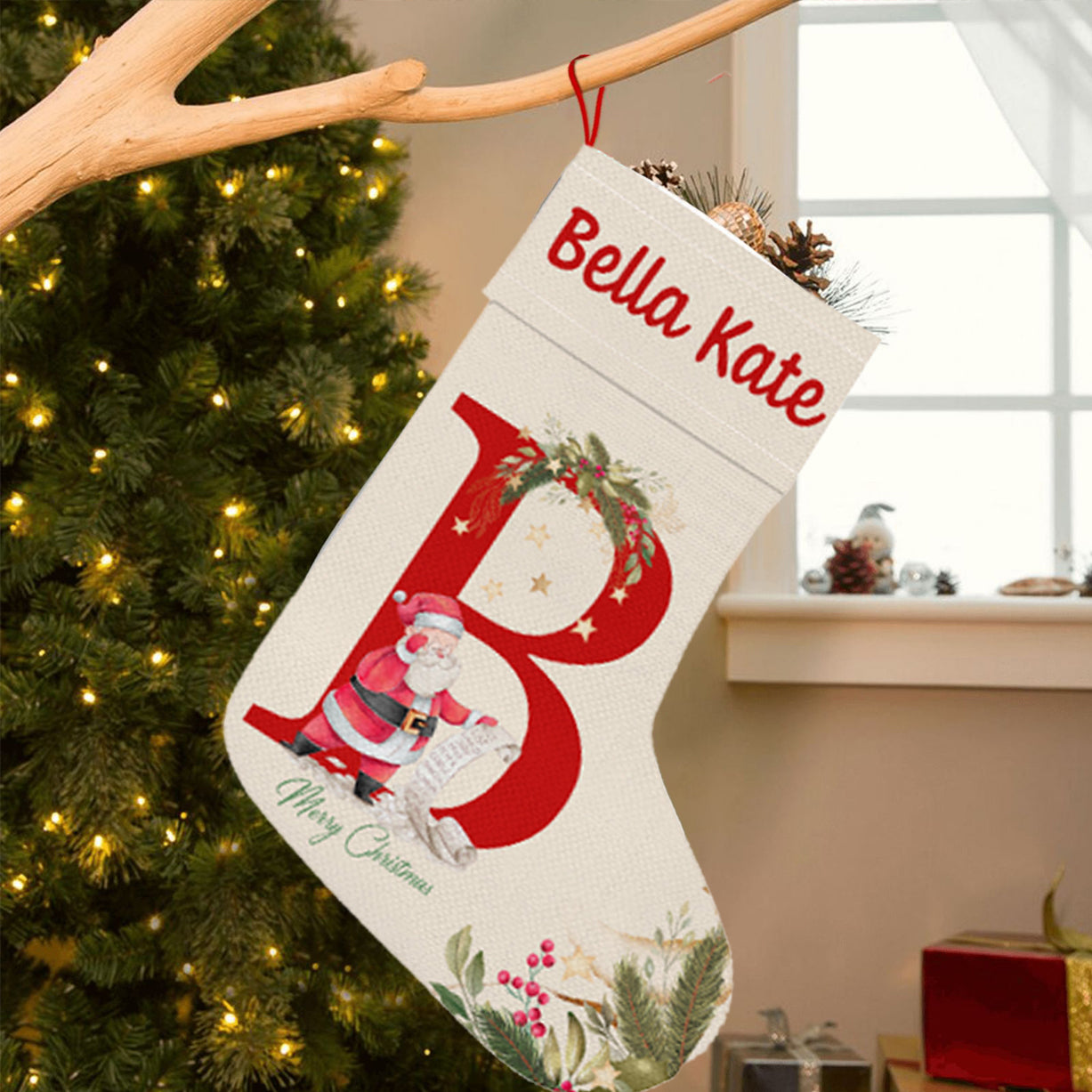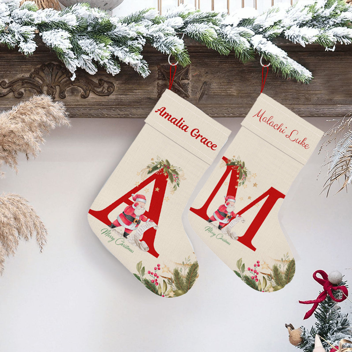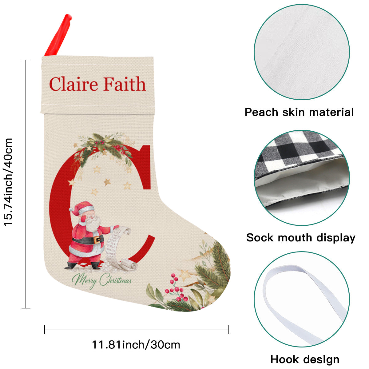 - 【Premium Quality Custom Christmas Stockings】- These personalized christmas stocking sets are made of 100% linen. This high-quality flax composite fabric can ensure long-term use and keep the color bright and lasting.