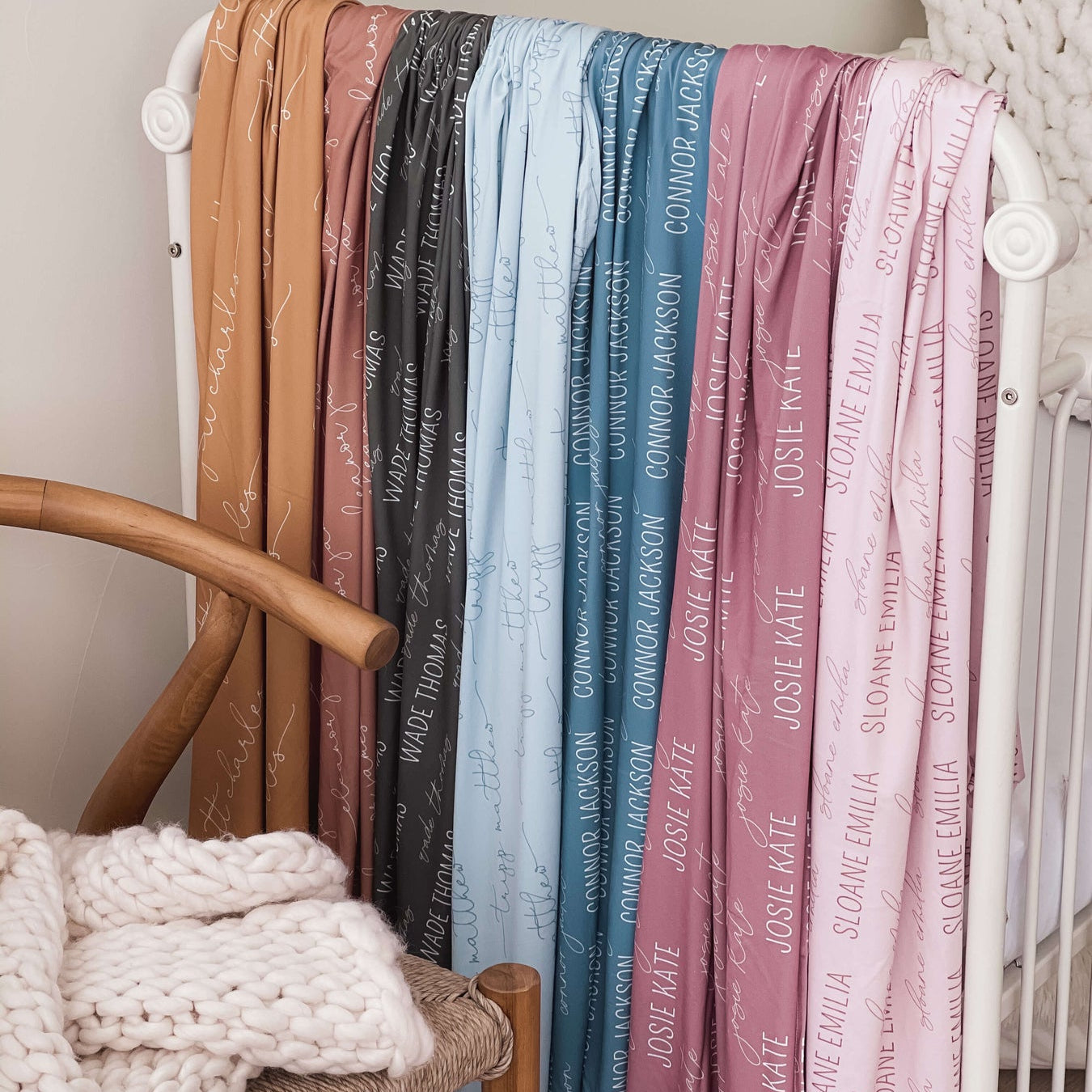We love these butter-soft baby name swaddles! Add some flair to your hospital gear when you wrap your newborn with their own personalized swaddle blanket. No one will forget their name! You'll love how versatile this blanket is! Use it to swaddle your newborn, for tummy time and for a security blanket once baby has reached the big kid phase. They also make that perfect gift, if you know they're set on a specific name!