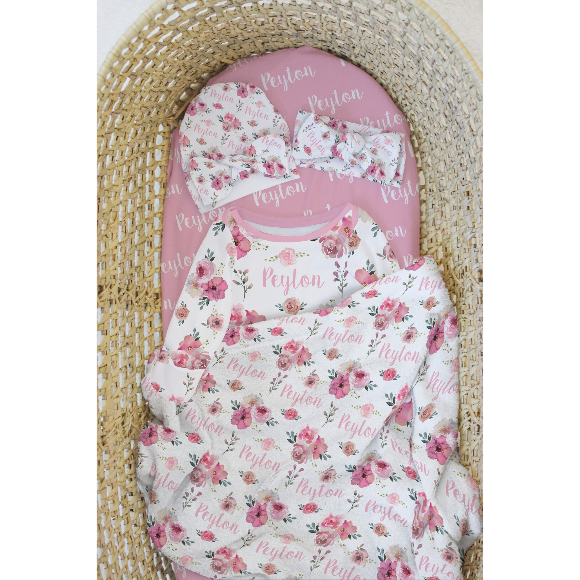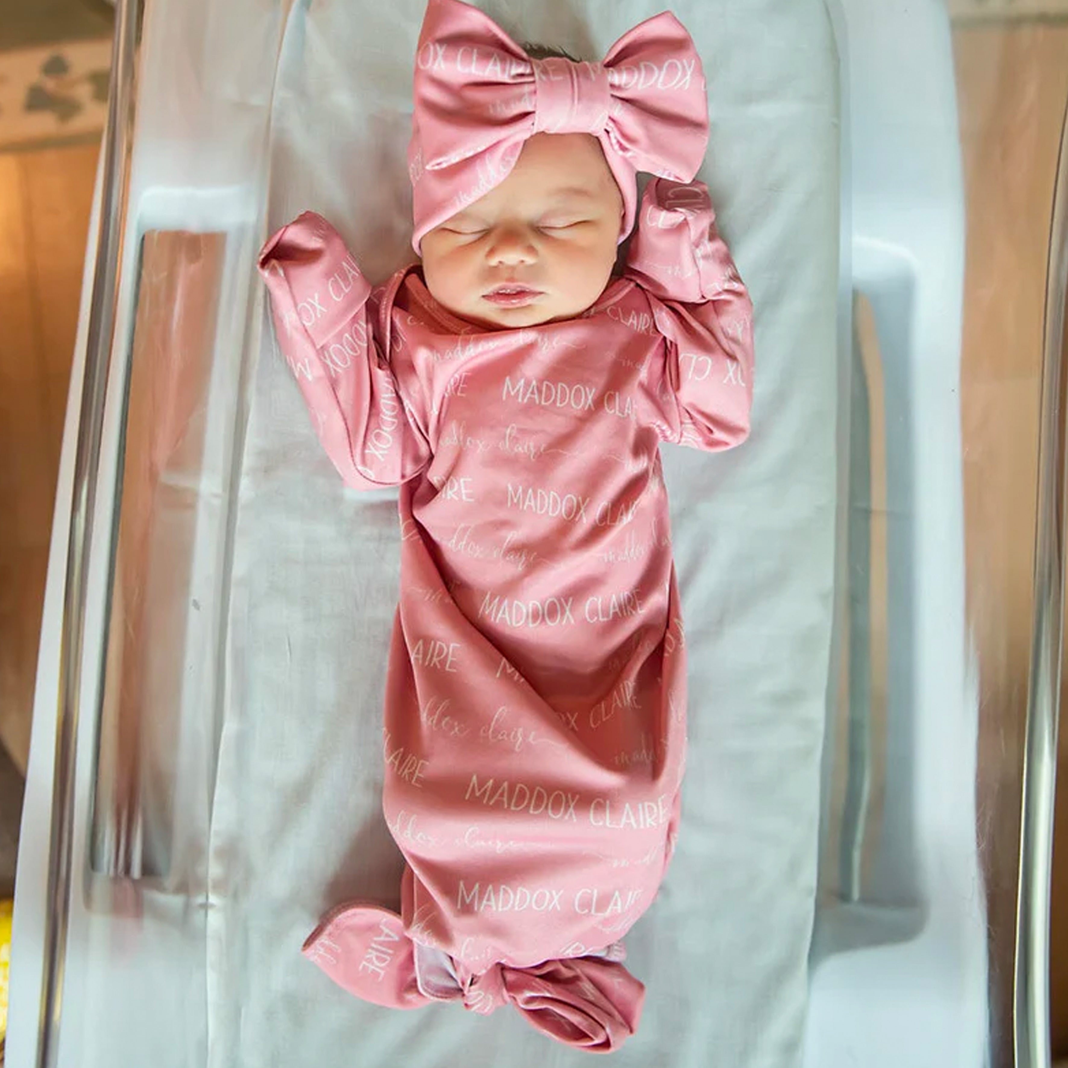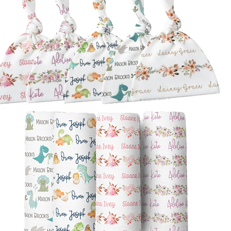 A: We're more than happy to help with that! Usually, moms, grandmas, and those gifting them to friends would start with a swaddle set. The most popular combo is pairing it with a blanket, designed to match. Additionally, I'd recommend knot gowns, Onesies, and wood cards.